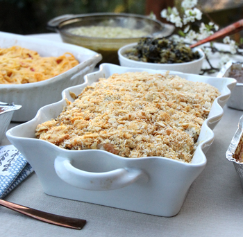 Cornbread Dressing, Sweet Potato Casserole, Macaroni and Cheese, Mashed Potatoes, Southern Corn, Green Beans, Green Bean Casserole, Butter Beans, Field Peas with Snaps, Turnip Greens, Broccoli, Cheesy Broccoli Rice, California Blend, Squash Casserole*, Artichoke Bake*, Asparagus Casserole*, Creamed Spinach*